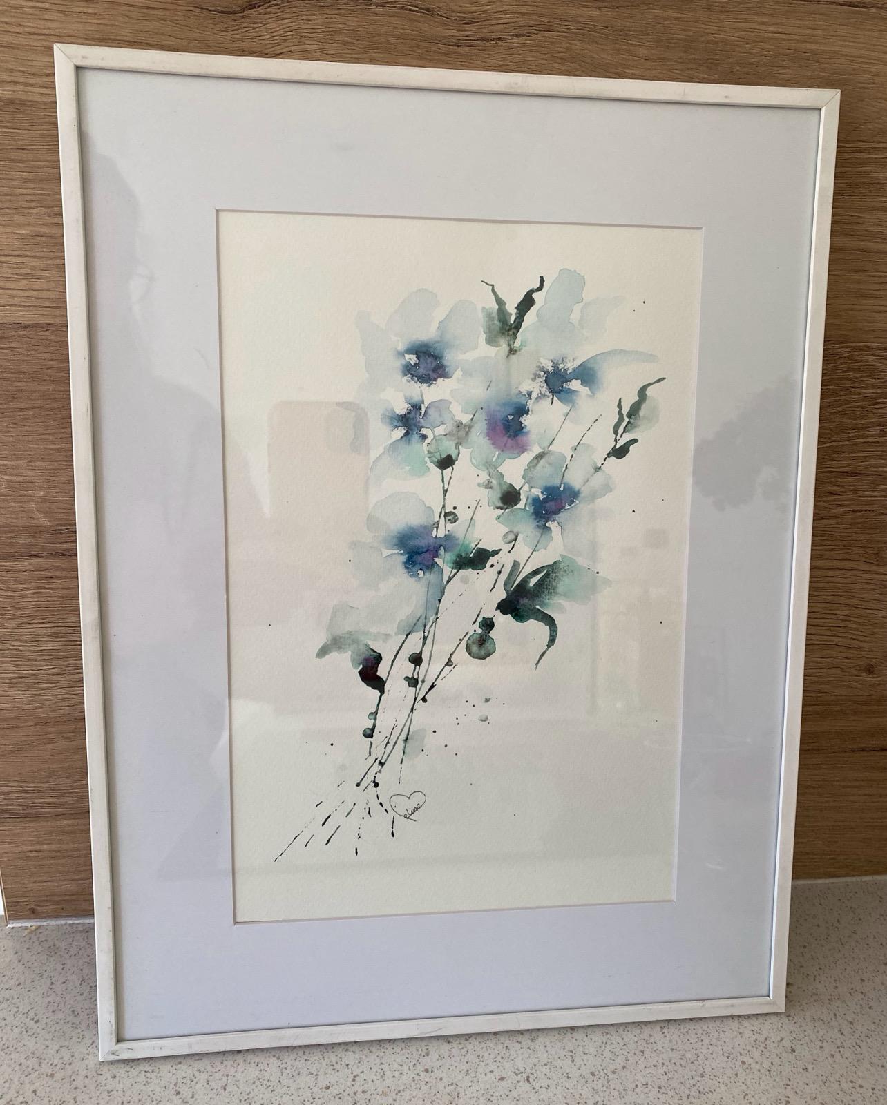 Een stille beweging van blauw die zich als een droom over het papier uitvouwt.